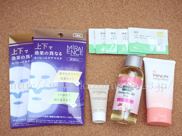 パウチ物が多めですが、汗ふきシート・クレンジングジェル・シートマスク・プリマヴィスタの化粧下地などがありました。