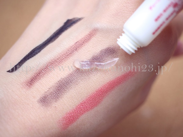 かたそうなジェルだったため、少し多めに手に取り、メイクとなじませてみることにしました。クルクルとなじませていると、指すべりが軽くなって、やわらかく、軽くなりました。