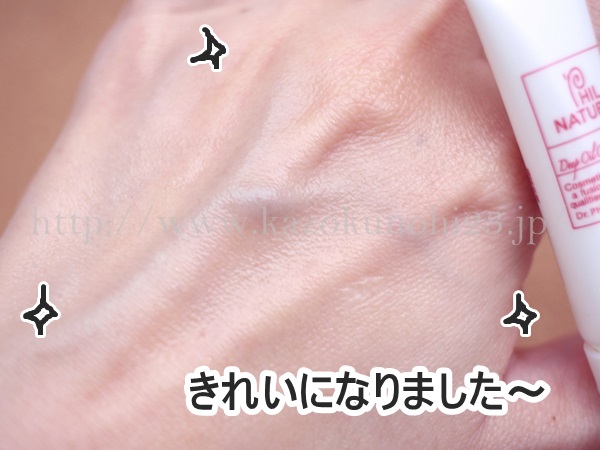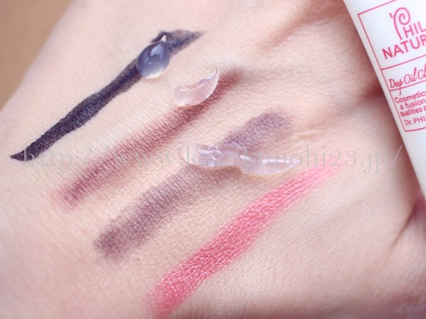 ほぼ、メイクが浮き上がってきたところで、ぬるま湯をたらして乳化をはじめました。ぬるま湯をたらしたところを指でさすって、白濁したら洗い流します。この感じ、ドモホルンリンクルのクレンジング剤とよく似てます。