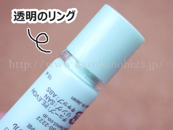 キャップについている透明のリングをはずし、キャップをもう一度締め直します。リングははさまっているだけなので、力とか入れずにパチっと簡単に外せました。